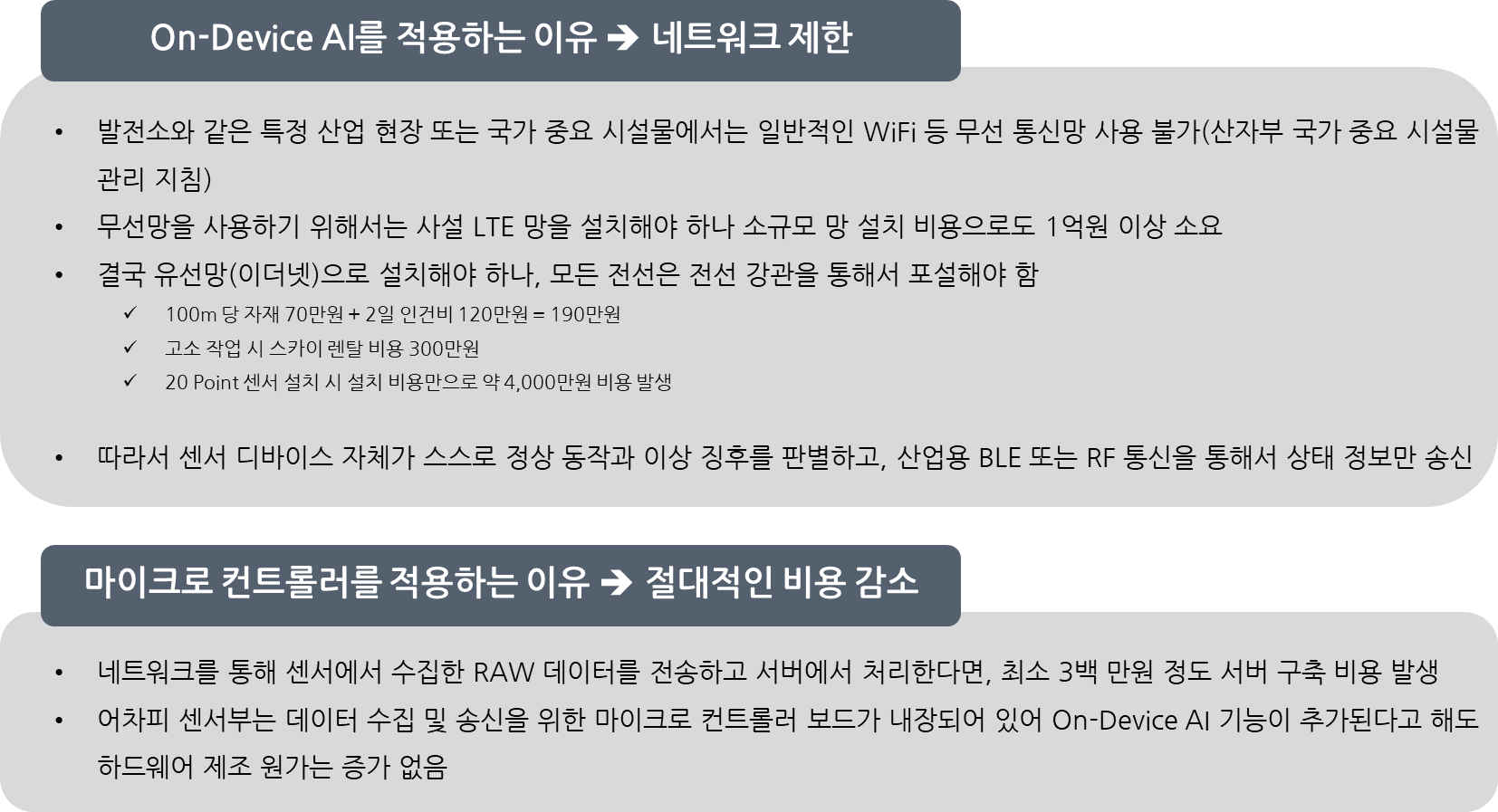 - 또한 발전소의 계획 정비에 따라 설비의 가동 중단 및 재가동 시 센서의 설정이 바뀌는 경우가 많아, 시스템 납품 후에도 설정값 변경으로 인한 유지보수 비용이 지속적으로 발생
